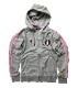 ピンクのラインにSY GYMのラバーロゴがプリントされたスウェットジップパーカー。