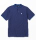 爽やかなマリンブルーのボーダーハートがフロントとバックに刺繍されたスタンドカラーポロシャツ。